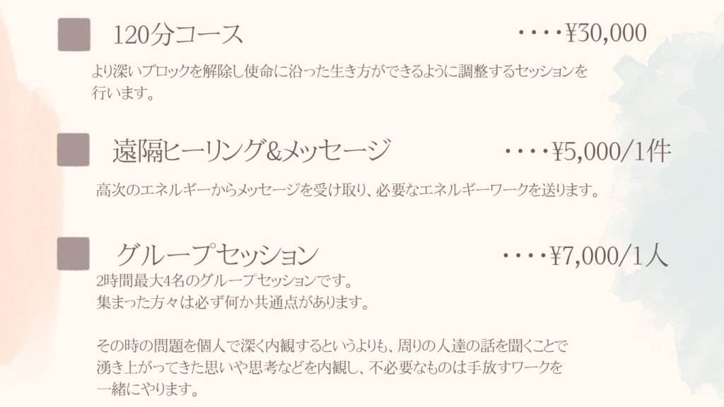 セッションはご希望に応じ対面orオンライン(LINEミーティング)のどちらでも対応可能でございます。